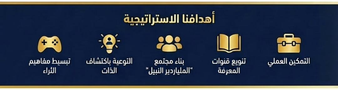 “أن نكون المنارة الأولى عربيًا في بناء (عقلية الثراء) واكتشاف الذات، عبر تحويل الثقافة المالية من مجرد نظريات جافة إلى أسلوب حياة ممتع وتطبيقي.”